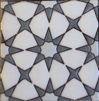6x6 Hand-Painted Modern Marakesh Islamic Star Tile – Blue & White Geometric Ceramic Tile for Pools, Backsplashes, and Accent Walls (Per Box 26 pcs)